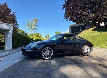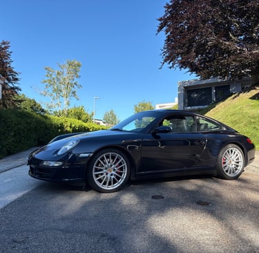 L'entrée dans la collection: En 2015, je vends ma panda 4x4 de 2013 et j'achète une panda 4x4 val d'Isère de 1986. Le pied absolu en conduite quotidienne. Avec l'argent économisé chaque mois, je peux m'acheter mon rêve automobile. Une Ferrari. Alors oui, c'est une Mondial, mais cabriolet et 4 places. Je me projetais avec des enfants dedans, une voiture pour la vie.... Finalement, les enfants sont arrivés, mais le V8 dans les oreilles cela n'a pas été l'extase attendue. Du coup, je me suis mis à chercher un véhicule 4 places, sportif et plus utilisable au quotidien. Mon premier choix s'est porté sur une Maserati 4200gt. Le moteur est fou, les sensations de conduite, un peu moins à mon goût. Après une année, je reprends ma recherche et me sépare de la Maserati. Là, je suis rentré dans l'univers Porsche. J'en essaye pas mal de la 996 à la 991.2. Des 4s, turbo, gts, manuelle, PDK, et au final, celle qui m'a fait le plus vibrer c'est la 997.1 C4S boite méca. Suffisamment moderne pour être utilisable au quotidien, le look intemporel, une puissance exploitable sur la route, la boite mécanique, et un son avec le PSE, très flatteur.